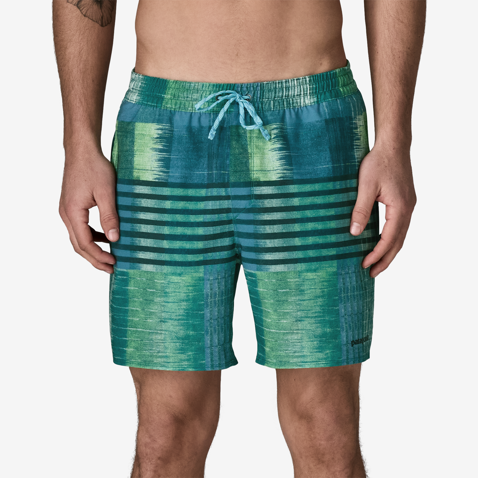 A textured drawcord at the waist helps to keep the knot secured and your trunks on in heavier surf