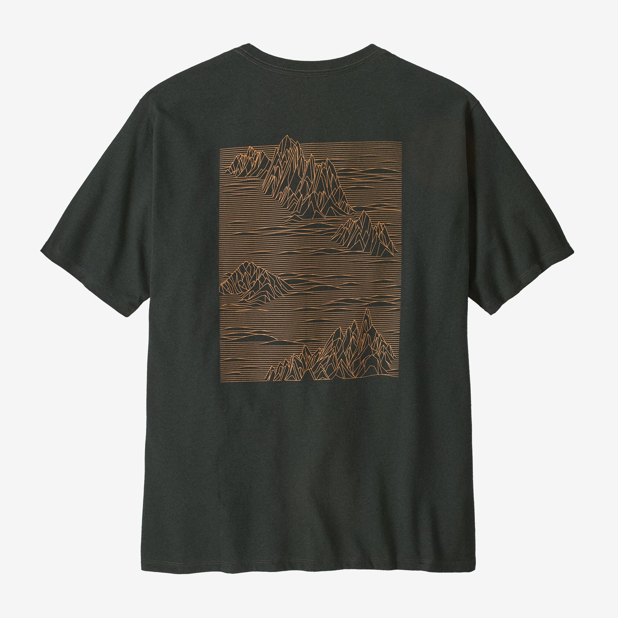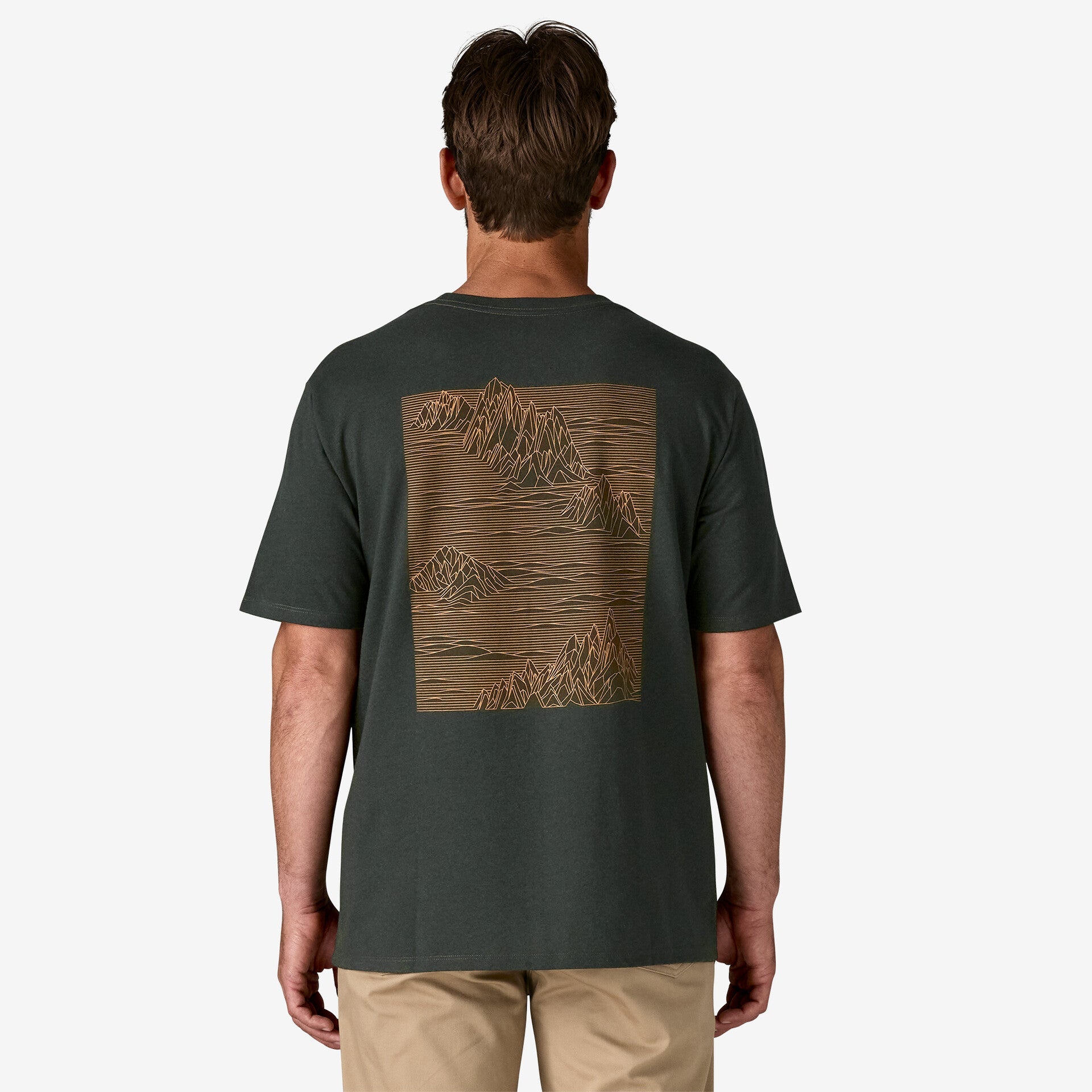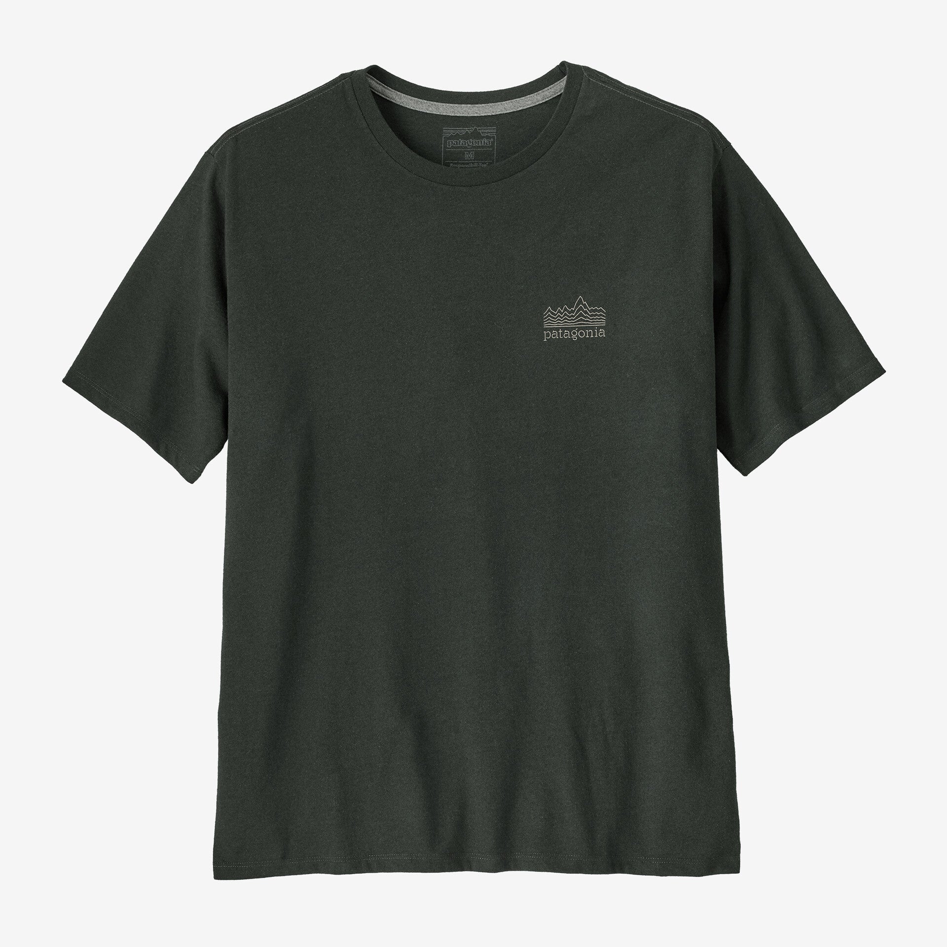 • Our Patagonia® Men's Strataspire Responsibili-Tee® has a retro graphic screen-printed recycled fabrics to reduce our reliance on virgin raw materials