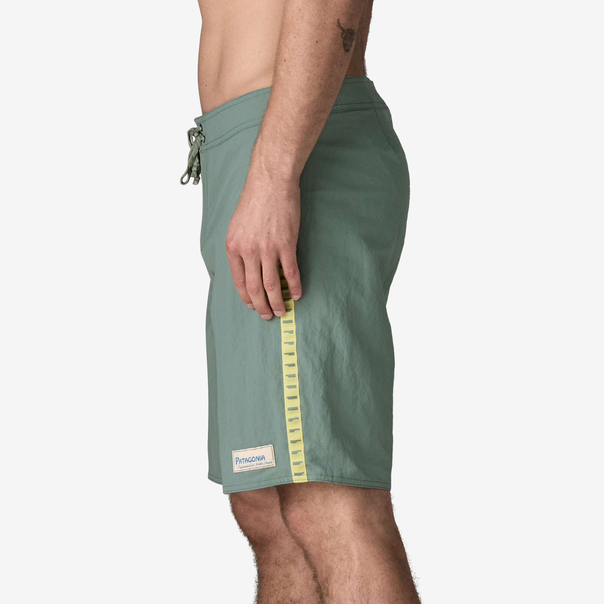These boardshorts are built with 4-ply, 4.9-oz NetPlus® 100% postconsumer recycled nylon made from recycled fishing nets to help reduce ocean plastic pollution; with a durable water repellent (DWR) finish made without intentionally added PFAS to shed light moisture