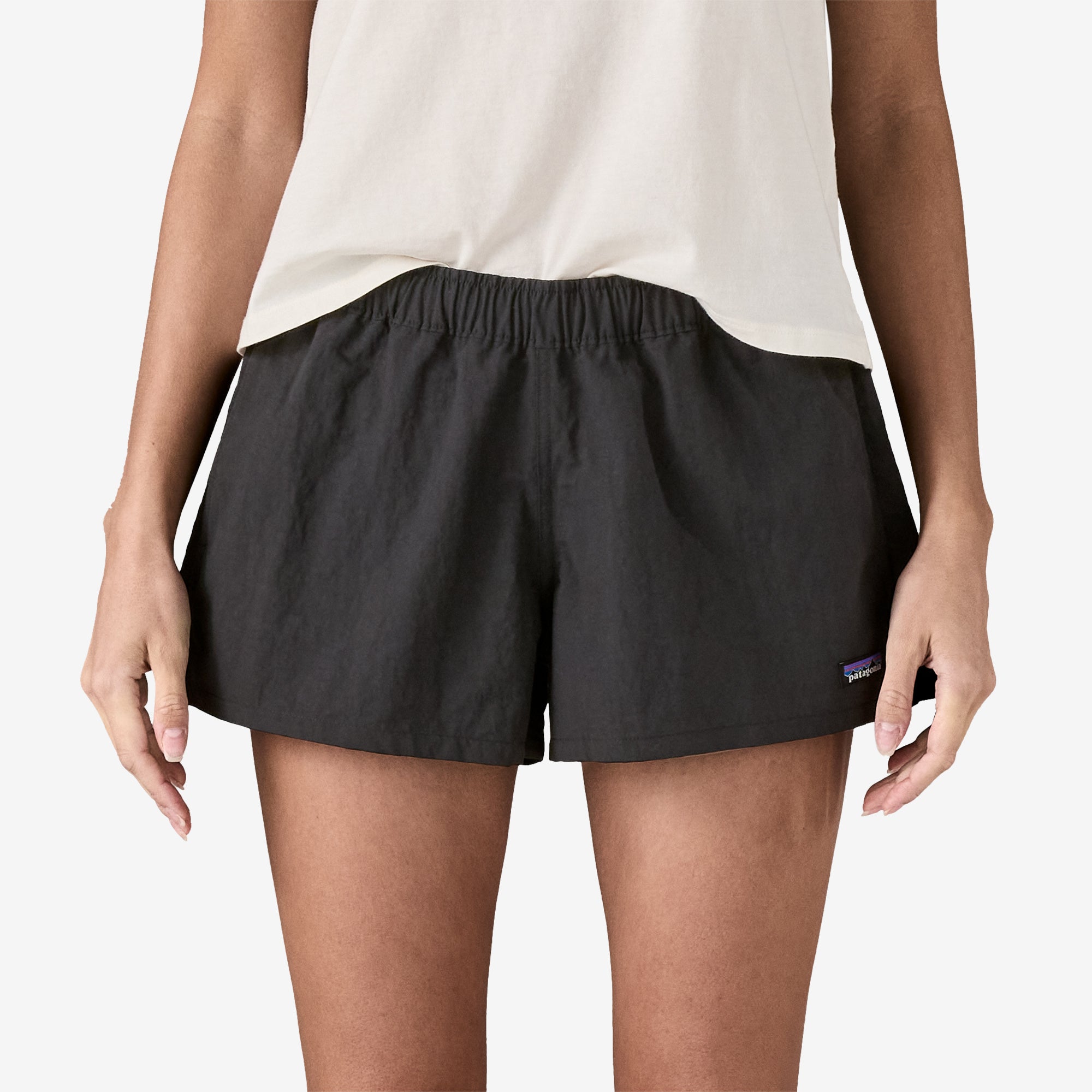 • Our Patagonia® Women’s Barely Baggies™ Shorts - 2½ have a low rise, a shorter inseam and are made of 100% recycled nylon