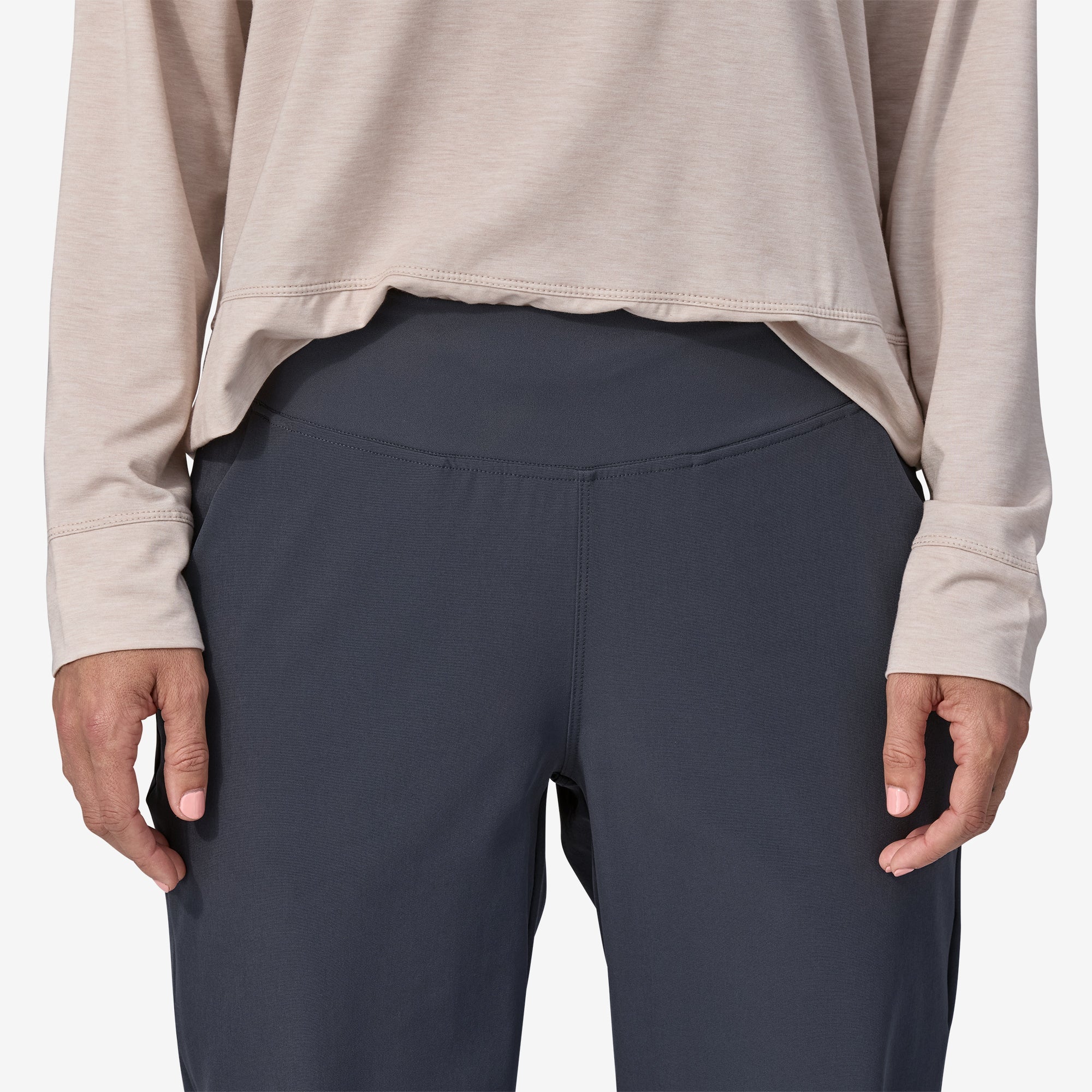• Our comfy Patagonia® Women’s Happy Hike Studio Pants feature a wide waistband and are made from lightweight four-way stretch-woven fabric for movement