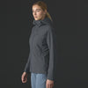 Minimally bound, stretchy Light Touch Expansion Hood with passive adjust fits with and without a helmet and easily pulls on or off, even when the jacket is zipped; centre-front zipper has a zipper garage at the chin for next-to-skin comfort