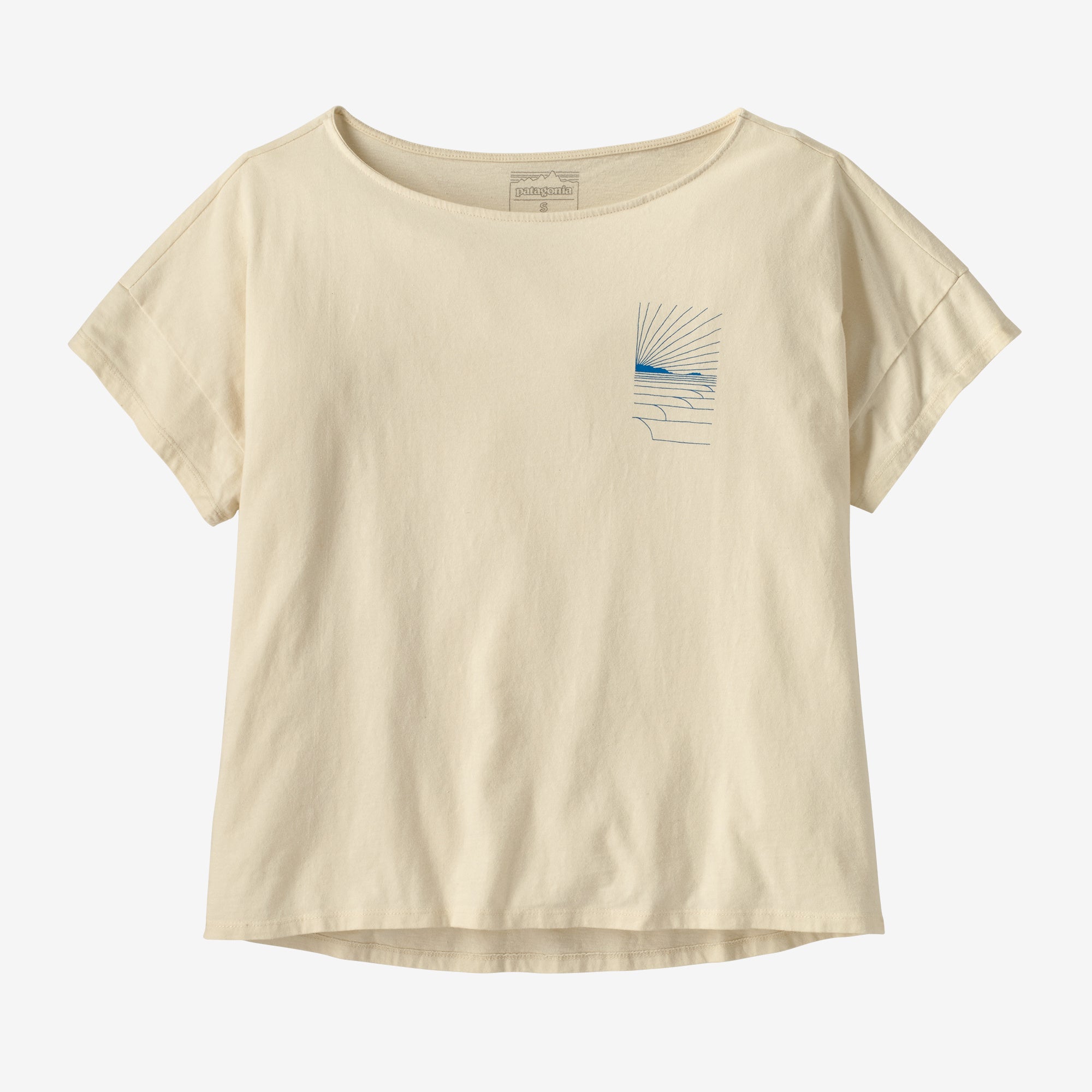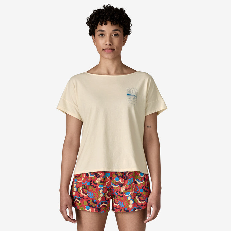 • Patagonia's Women's Waves Rolling Relaxed Drop-Sleeve Organic T-Shirt has original artwork and is made of 100% organic cotton